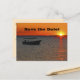 A photograph of a silhouette of a fishing boat at sunset, with a vivid orange sky, decorates this unique and fun 90th Birthday "Save the Date" announcement postcard. The reverse has black lettering on an ivory background. You can easily CHANGE the NAME, AGE, EVENT, DATE, etc. Original photograph by Marcia Socolik. All Rights Reserved © 2015 Alan & Marcia Socolik.