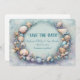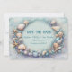 Beautiful save the date card with a wreath of seashells and starfish. All beautiful colors, updated with your information, change the fonts and make it your own!