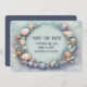 Save the Date. A pretty wreath of seashells surrounds the information for your save the date card. A coastal, beach, seaside or ocean lovers card.