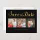 Gorgeous faux gold foil typography on the front of this designer postcard which you can upload into with 3 of your own engagement/wedding photo portraits. Easily and quickly personalise this designer professionally printed thank you postcard here and now by just typing over the example text and adding your own photographs. Elegant, chic, simple and classy gold script/cursive typography.