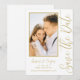 Save The Date Black Gold Stylish Script Modern Wedding Cards features a white background with your custom photo. Personalise with your text by editing the text in the text boxes provided. Designed for you by ©Evco Studio www.zazzle.com/store/evcostudio