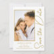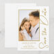 Save The Date Black Gold Stylish Script Modern Wedding Cards features a white background with your custom photo. Personalise with your text by editing the text in the text boxes provided. Designed for you by ©Evco Studio www.zazzle.com/store/evcostudio