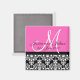 Save The Date Black/Pink Monogram Damask Trellis Magnet