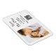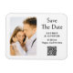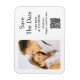 Save The Date Black White Stylish Script Modern Wedding Magnets features a white background with your custom photo. Personalise with your text by editing the text in the text boxes provided and add your website URL for your custom QR code. Designed for you by ©Evco Studio www.zazzle.com/store/evcostudio
