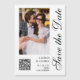 Save The Date Black White Stylish Script Modern Wedding Magnetic Card features a white background with your custom photo. Personalise with your text by editing the text in the text boxes provided and add your website URL for your custom QR code. Designed for you by ©Evco Studio www.zazzle.com/store/evcostudio