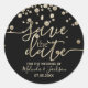 Save the Date | Black with Gold Diamonds Classic Round Sticker