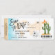 Destination Cancun, Mexico Wedding Boarding Pass Ticket Gold Plane Save the Date with heart and plane icon with Cacti