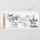 Destination Paris, France Wedding Boarding Pass Ticket Gold Plane Save the Date with heart and plane icon with Eiffel Tower