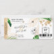 Destination Beach Wedding Boarding Pass Ticket Gold Plane Save the Date with heart and plane icon with tropical leaves