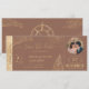 Destination Beach Wedding Boarding Pass Ticket Gold Plane Save the Date with heart and plane icon with tropical leaves. Add your photo.