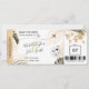 Destination Beach Wedding Boarding Pass Ticket Gold Plane Save the Date with heart and plane icon with tropical leaves