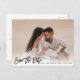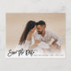 This Save the Date announcement card features brush script typography, your favourite photo and your custom text along with an optional QR Code on the back, in a convenient postcard format.