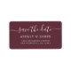 Save the date return address labels with white chic script calligraphy on an burgundy background. Simply add your names and address to these elegant handwritten save the date labels. Exclusively designed for you by Happy Dolphin Studio. If you need any help or matching products please contact us at happydolphinstudio@outlook.com. We're happy to help you make your wedding day the most beautiful day!