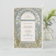 Announce your upcoming wedding with this exquisite 'Save the Date' card, designed in the distinctive Art Nouveau style that pays homage to the work of Alphonse Mucha. The card is adorned with a sophisticated colour palette of seafoam green, cornflower blue, and antique gold, framing the event details with an elegant botanical motif. The intertwining of natural floral elements around the classic typography exudes the organic elegance and decorative flair characteristic of Mucha’s era. This 'Save the Date' card sets the stage for an event that promises to blend the romance of the past with the celebration of a future together.