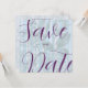 This Save the Date Card offers an elegant oversized plum coloured font design with transparent background layers of pink, blue and grey, all the copy is editable, click the Personalise button to make this your own, enjoy!