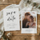 Crafted from premium quality cardstock, this save the date card leaves a lasting impression. Its smooth texture complements the chic handwriting style, creating a visually appealing and fun piece that your loved ones will cherish. Share your excitement and invite them to mark their calendars for the day you say "I do." Let this card be the perfect introduction to the joy and laughter that await on your special day.