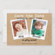 A fun save the date invitation featuring your childhood photos on a vintage rustic kraft background. The reverse has additional save the date details, including your wedding website.