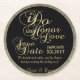Save the date coasters custom designed champagne damask with black panel overlay and golden save the date typography. Personalised with an inspiring quote of how the couple met. "We found each other not by chance, but by creating the feeling as if." A unique way to announce your wedding day that may be customised to fit your party theme.