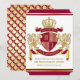 Save the Date Coat of Arms Red Gold Lion Emblem Invitation