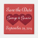 This Save the Date refrigerator magnet features two crimson hearts side-by-side with the names of the bride and groom across them in a white font on a muted pinkish-red background. The words "save the date" appear above the hearts, and the date appears below. Click the ""Customise it" button to re-size/re-position the crimson hearts, change the background colour, and personalise the text. Choose font style, size, and colour. Design can be customised for an engagement party, bridal shower, rehearsal dinner, wedding, anniversary or valentine's party save-the-date or party favour.