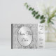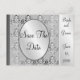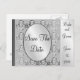 Elegant "Save The Date" postcards on an oval frame album cover with pretty damask lace pattern. Easy to personalise with the bride's and groom's names and the date. Or change the text for another special occasion party like a 25th Anniversary.