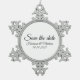 Save the Date, custom script text Wedding Announcement Snowflake Pewter Christmas Ornament.