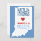 Customise this city-specific save the date card. Just click on the "customise it" button to move the heart to the location of your city in Indiana, and adjust your names as needed. Don't forget the matching stamps: