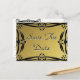 Romantic "Save The Date" on a rich gold background postcard for special occasions, party, and events invitations. Background is elegant in a stunning, eye-catching gold texture look and a decorative original border design in contrasting black that frames the card beautifully. Text can easily be changed and personalised. Great for upcoming Christmas and holidays, weddings, engagement, 50th golden anniversary and birthday parties, etc. Back can also be personalised with more text or just delete sample text to hand write later.