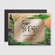 For your travel and adventure wedding in tropical destination - Save the Date magnet with golden suitcase and tropical leafs