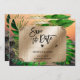 For your travel and adventure wedding in tropical destination - Save the Date card with golden suitcase and tropical leafs