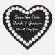 Diamond heart save the date sticker on a heart shaped sticker. Put in your names and wedding date. Background and text colour can be changed in customise option in the edit menu.