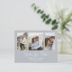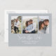 This beautiful design features save the date dusty blue, QR code website online information, three 3 photos simple elegant, multi-photo couple engagement picture, weddings modern simple elegant, engagement photos budget postcard, calligraphy brush script, minimalist calligraphy script typography, modern brush script, budget-friendly save the date
