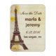 Eiffel tower in Paris against a white / cream grunge background with faint handwriting in the background. Perfect for destination wedding or even Paris Las Vegas! Easily change text and details on this magnet.