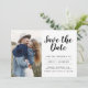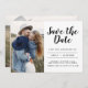 Modern and Elegant Minimalist Photo Save the Date Wedding Postcard. The save the date invitation card includes modern hand lettered script typography with a chic and simple design that you can add your customised engagement photograph picture to.