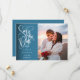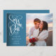 This elegant white script photo save the date card features your special photo and a decorative script save the date above your names, date and venue. You can personalise the colour on the front and reverse to suit or add a message to the reverse. Designed by Thisisnotme©