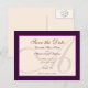 Save the Date Elegant Monogram Purple Postcard