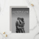 Share the news of your engagement and upcoming marriage with this one-photo vertical save the date card featuring an elegant type treatment in white that sits at the top of a vertical photo. The type has room for long names, plus location date and other information for friends and family like a website. The back is a neutral shade with a subtle texture pattern. The colour can be adjusted by clicking "Customise."