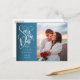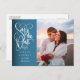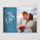 This elegant white script photo save the date card features your special photo and a decorative script save the date above your names, date and venue.