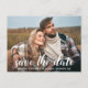 Save The Date Modern Engagement Couple Photo Postcard White Script