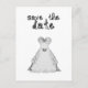 save the date fabric font wedding dress postcard