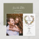 This elegant photo save the date card features your photo and a beautiful floral garland heart enclosing your script save the date message above your names, date and venue. The reverse has additional save the date details, including your wedding website. Designed by Thisisnotme©