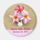 Save the Date magnet with plumeria on shells on the beach. Can customise with your event date.