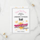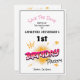 A children's (girl's) birthday party that you can personalise using the "personalise this template" feature on the right. Cool pink and black typography on a white background with pink and orange fun graphic. All the details can be entered on the back.