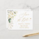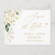 Gold Script Green and White Floral Wedding Save the Date Postcard.