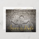 Gorgeous faux gold foil typography on the front of this designer postcard which you can upload into with your own engagement/save the date photo portrait. Easily and quickly personalise this designer professionally printed save the date postcard here and now by just typing over the example text and adding your own photograph. Elegant, chic, simple and classy gold script/cursive typography.