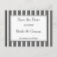 Save the Date engagement or party announcements with a simple striped background pattern of light and dark grey. Click Customise it to change fonts, sizing, background colours and more, even save your design for later.