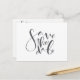 save the date, hand drawn script-white and grey announcement postcard