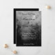 A custom wedding or party announcement card with a background of a spooky Halloween sky with misty trees along a dark haunted road, gothic ravens and a cloudy full moon.