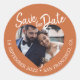 Save the Date Heart Photo Burnt Orange Classic Round Sticker