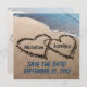"Save The Date!" text in blue, or easily change the wording, is added on this beautiful, original photo of two hearts written in the sand along the blue ocean water at the beach to signify love and romance. Easily insert the bride and groom's name in each heart as shown, and the date below them. The sample names are written in the perfect matching font style and colour which can also be changed easily. Put your custom text and details and information on the back of the invitation or just leave blank if desired. Great concept for upcoming summer engagements, weddings, anniversaries, and save the date invites and announcements for the happy couple.